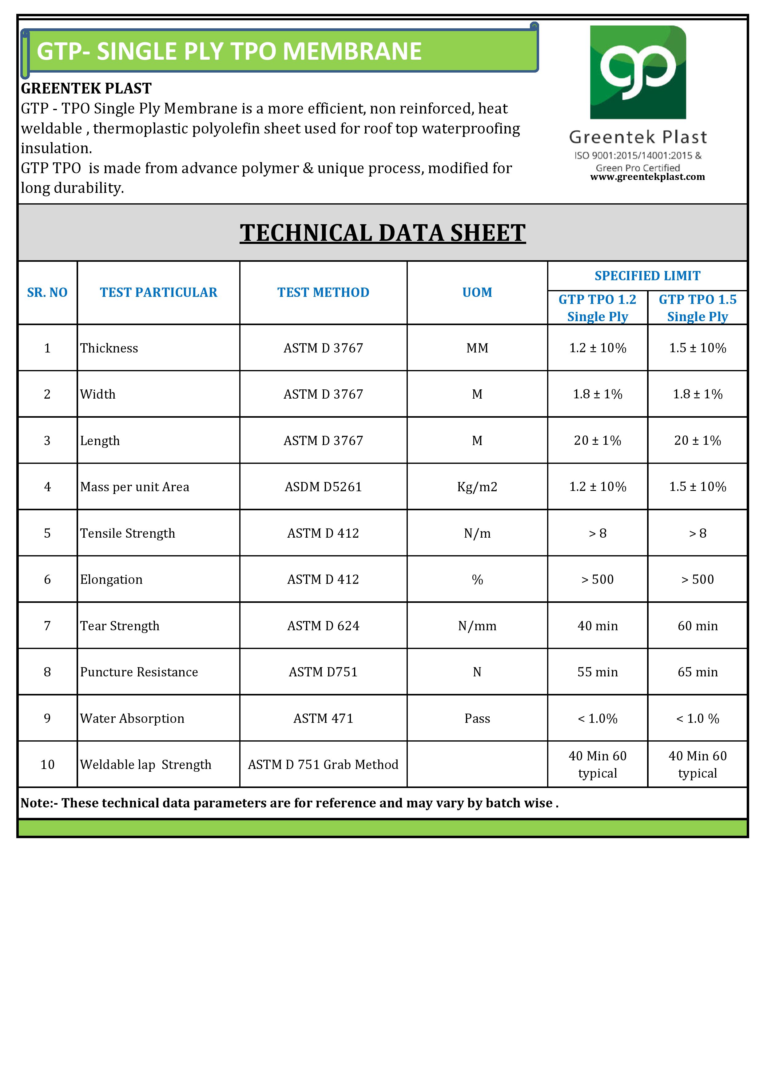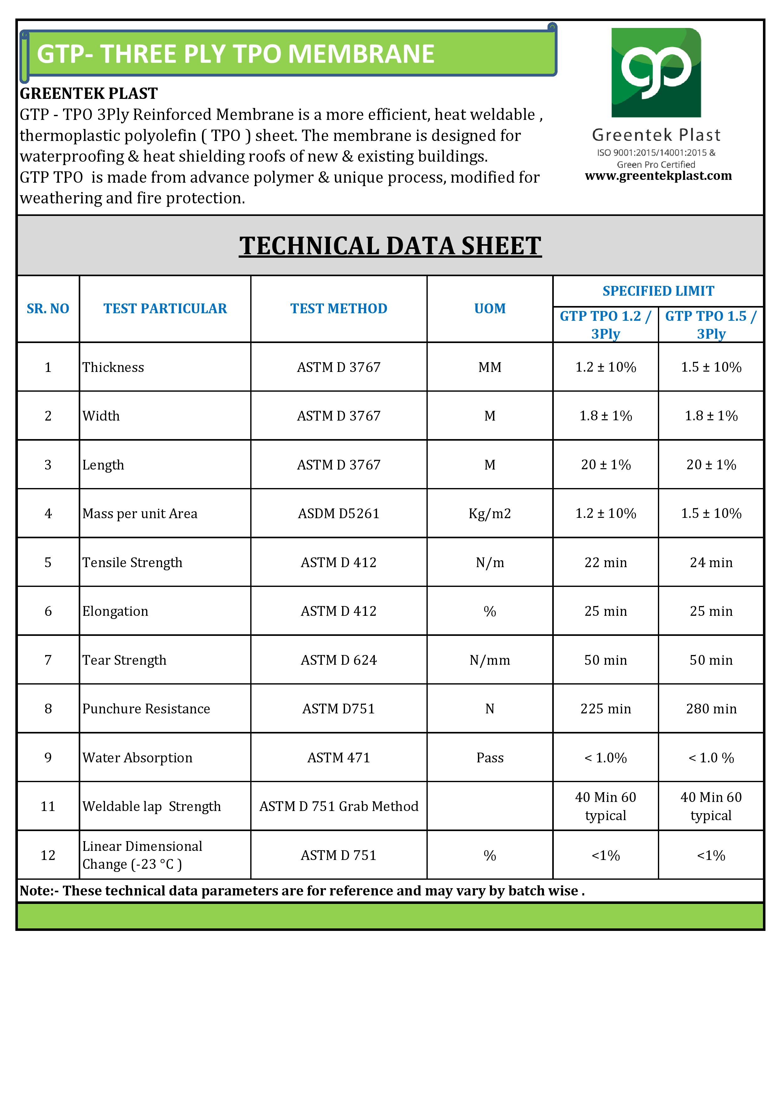 Know MoreGTP TPO Membrane is made from materials like polypropylene and ethylene-propylene rubber, offering durability and flexibility.