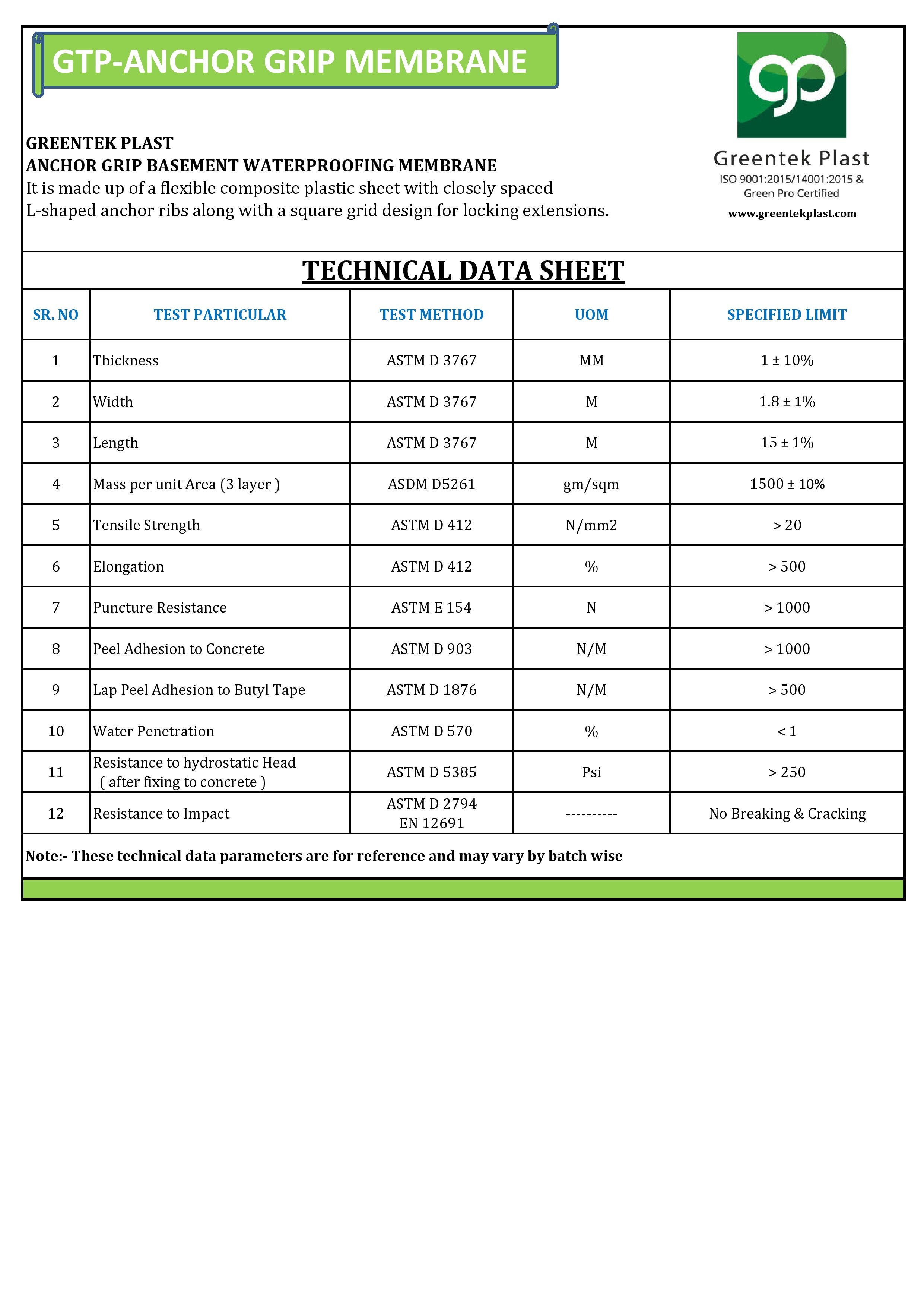 Know MoreAnchor Grip an innovative composite plastic waterproofing membrane is made up of a flexible composite plastic membrane