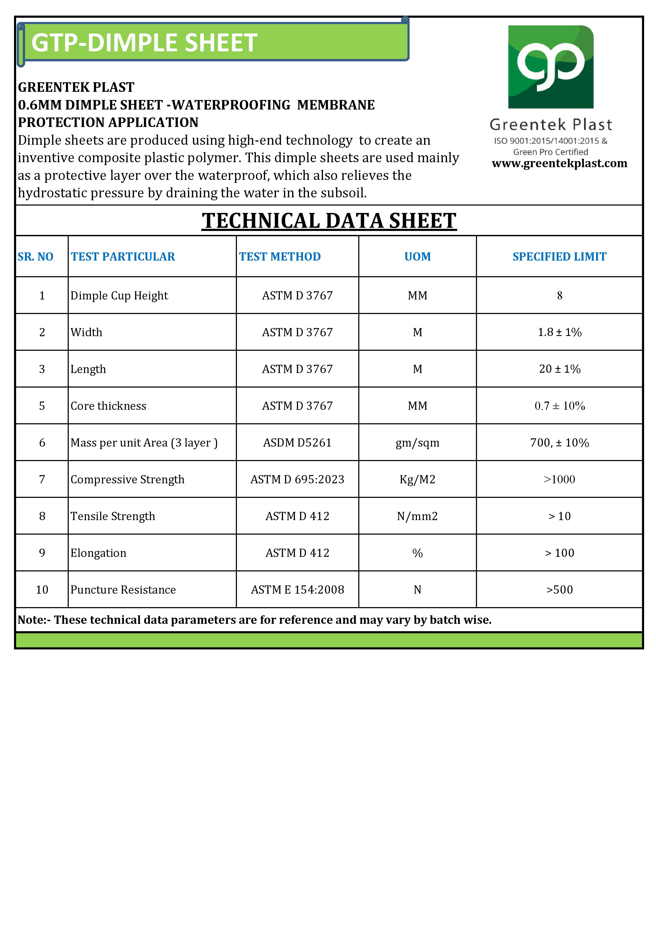 Know MoreDimple drain sheet is specifically designed for use with all waterproofing membrane systems as well as any torch-applied
