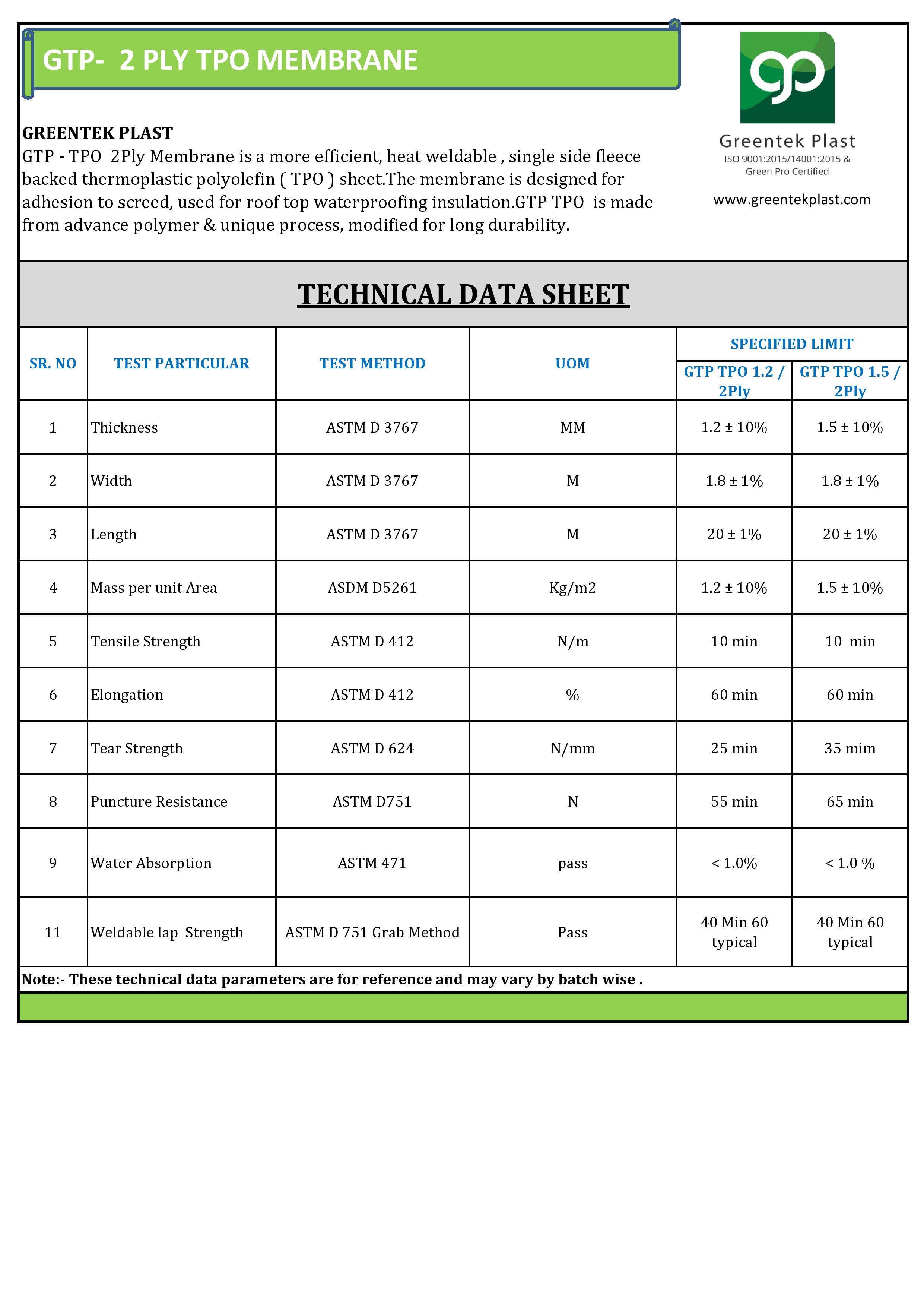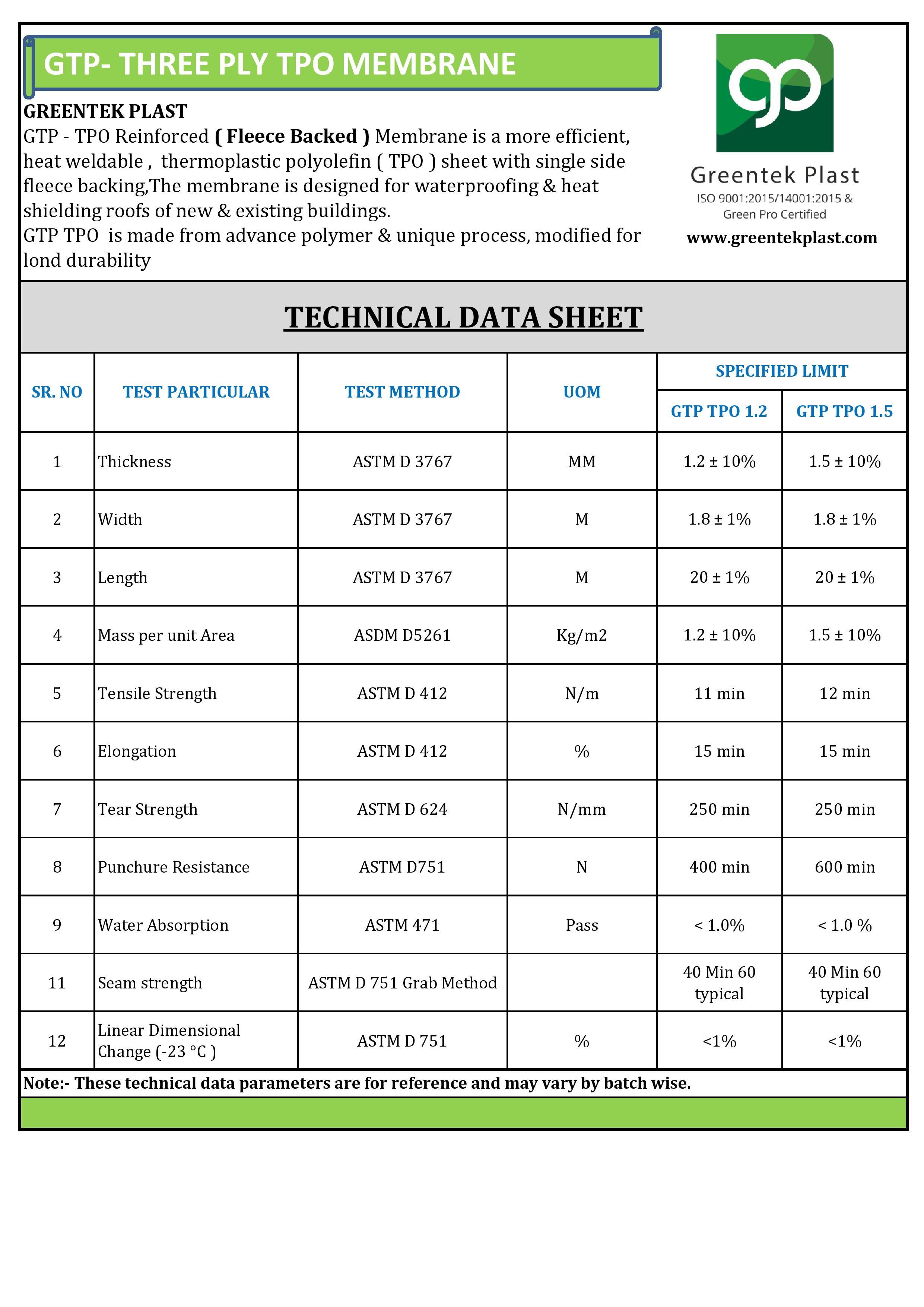 Know MoreGTP TPO Membrane is made from materials like polypropylene and ethylene-propylene rubber, offering durability and flexibility.